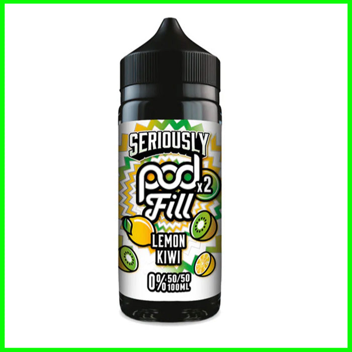 Seriously Pod Fill's Lemon Kiwi e-liquid is a vibrant and invigorating fusion of two tropical flavors that come together in a delightful, refreshing blend. The tangy, zesty taste of kiwi immediately grabs your attention, its bright, slightly tart notes offering a unique and exciting burst of flavor that dances across your taste buds. This lively kiwi essence is beautifully complemented by the crisp, citrusy freshness of lemon, whose sharp, tangy profile brings a burst of sunshine and a touch of zing to the mix. Together, these two fruits create a dynamic and harmonious combination where the sweet-tart kiwi meets the bold, refreshing lemon in perfect balance.